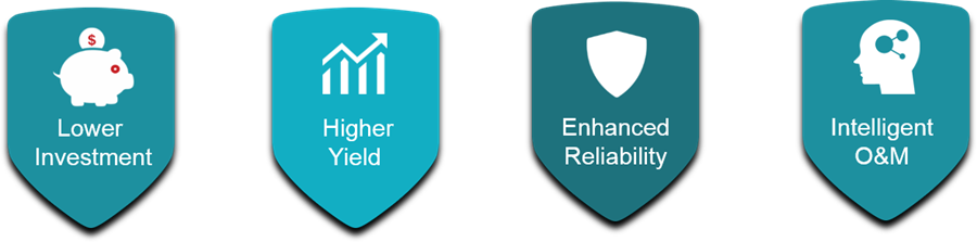HT series offers 100kW-136kW models with 1100V DC input. The 100kW model will come with 10MPPTs and a DC input voltage of 1100V and other inverters of 1100Vdc for 120/136kW will come with 12 MPPTs. Low voltage grid operational capability of 400Vac is available on 100/120kW string inverter and high voltage 500/540Vac available on 136kW.